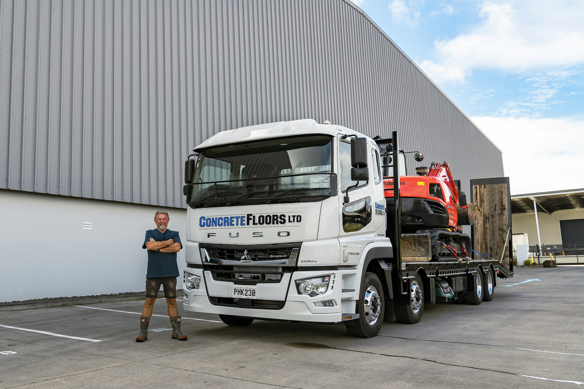 A new FUSO Shogun Super Low is laying the foundations of bottom line growth for Duncan McLay and Mike Forde’s contracting and concreting operations around Auckland and Hamilton. The class-leading, low-height chassis transporter is reducing running costs, while providing safer, easier loading of heavy machinery as the lifelong friends and business partners look to sharpen their edge in a competitive market